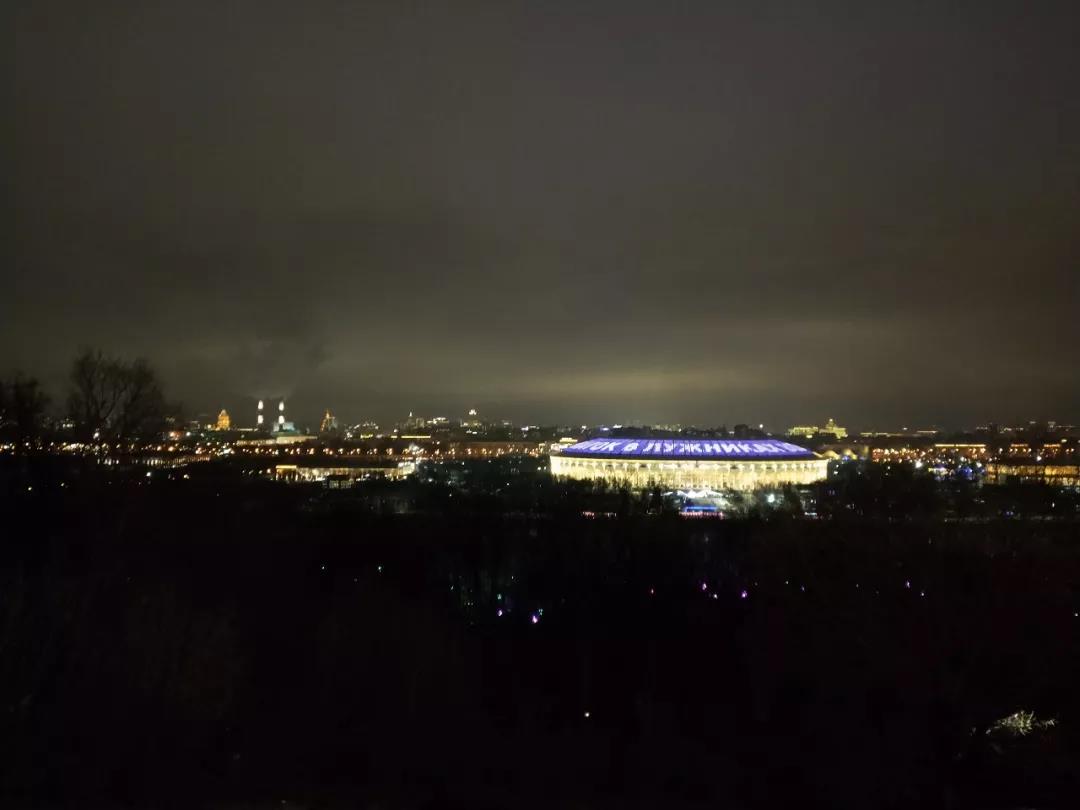 麻雀山頂極目遠(yuǎn)眺,望不盡繁華與典雅,巍巍白樺,裊裊浮云,熠熠燈火,在現(xiàn)代與古典中演繹著莫斯科的前世今生,有歷史的厚重感,有蒼生的寫實感,都在闌珊之際拓印出它應(yīng)有的輪廓。莫斯科國立大學(xué)莊嚴(yán)肅穆地聳立著,作為莫斯科七座斯大林式建筑之一,其大底座高尖頂?shù)奶厣滞庑涯?,在夜幕和燈光的輝映下?lián)纹鹆藲鈩?,展現(xiàn)出最高學(xué)府的極度自信。