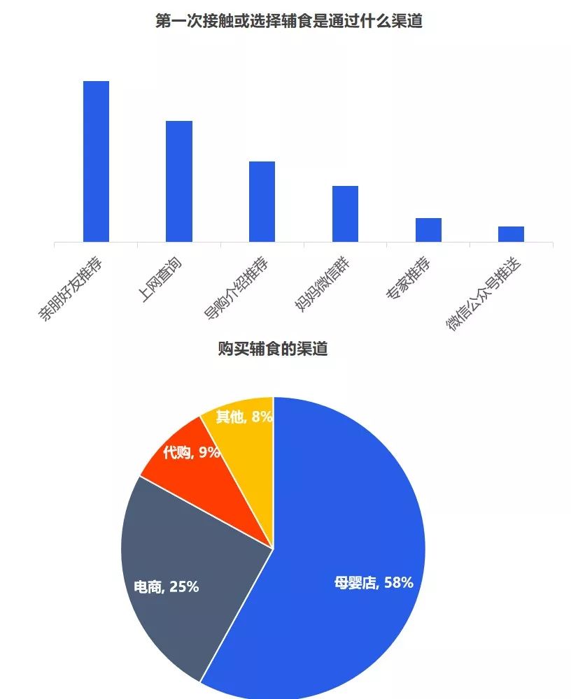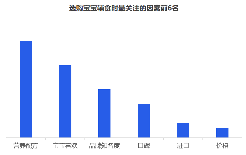 但是對于品牌而言,最重要的是洞察需求,一個好的洞察,一定是清晰揭示消費者的傾向,暗示了一個市場機會。究竟品牌入局輔食的機會有多大,媽媽們是如何看待輔食的? 從當(dāng)前的嬰幼兒用品的采購情況來看,媽媽負責(zé)嬰幼兒用品的采購,用戶占比超七成。奶爸也會經(jīng)常協(xié)助寶媽,參與到嬰幼兒用品的采購活動中,用戶占比為41.7%。 從近一年的百度指數(shù)來看,目前關(guān)注輔食最突出的地域是廣州、浙江、江蘇、山東、北京等,可見,當(dāng)前一二線城市的消費者對輔食的認知教育有所提高,但是低線城市的消費者對寶寶輔食的添加還不重視。 其次,從年齡段來看,“30-39歲”的消費人群對輔食的關(guān)注度最高,而在這其中,女性對輔食的關(guān)注度遠高于男性。 2019年母嬰行業(yè)觀察通過線上調(diào)研近10000人數(shù)的家長進行了輔食調(diào)查,其中80后占據(jù)24%,85后占據(jù)26%,90后44%,95后4%,對輔食的態(tài)度如下: 1、幾乎所有的媽媽都認為有必要給寶寶添加輔食,并且有一半的媽媽認為要在6個月時添加,而有32%的媽媽認為在6個月-1歲開始添加,還有16%的人在6個月以前就添加輔食。 2、大部分寶寶的輔食來源都是“購買與自制”相結(jié)合,而在購買輔食時,媽媽們購買最多的類型依舊是米粉,其次則是餅干、磨牙棒等小食品、營養(yǎng)面等。 3、互聯(lián)網(wǎng)與社交圈對媽媽的購買決策權(quán)的影響力較大,據(jù)調(diào)查顯示,媽媽們第一次接觸或選擇輔食大多都是通過親朋好友推薦,上網(wǎng)查詢等。當(dāng)然消費者在購買嬰兒輔食的渠道選擇上,其實與奶粉并無不同,為了保證產(chǎn)品的質(zhì)量和安全性,同時也為了可以得到育嬰專家的指導(dǎo)和幫助,消費者更傾向于在專業(yè)的母嬰用品連鎖店或主流電商平臺購買食品。 4、隨著85后、90后新生代父母的崛起,他們與父輩的消費觀念并不相同,不再執(zhí)著與于進口與價格等,而是開始關(guān)注是營養(yǎng)配方,重要的是寶寶喜歡。 5、對于寶寶而言,自添加輔食開始,都是與奶粉喂養(yǎng)相結(jié)合,目前超一半的寶寶每天食用輔食的頻率都是一天兩頓。當(dāng)然這在一定程度上也決定了每個月在寶寶的輔食上的花費是多少,從月消費來看,可以明顯看出200以內(nèi)的將近半數(shù),當(dāng)然也可以看出花費在300以上的有21%,可見,對于嬰兒食品這個特殊的品類,以及嬰幼兒這個特殊的消費人群,消費持續(xù)升級仍然明顯。近兩年來,嬰幼兒輔食高端化、有機化趨勢明顯。 近幾年來,越來越多的媽媽意識到輔食的重要性,隨著我國居民可支配的收入不斷提高,消費者投入了更多的關(guān)注給自己的孩子,作為寶寶的第二餐,消費者愿意投入更多費用,使用周期會不斷變長,且更注重輔食產(chǎn)品的品質(zhì)和質(zhì)量??梢婋S著消費水平的提升,年輕父母對于對孩子的飲食質(zhì)量、飲食營養(yǎng)的投入更加重視,會更追求高附加值、高品質(zhì)的輔食,中國輔食市場會繼續(xù)高速發(fā)展。