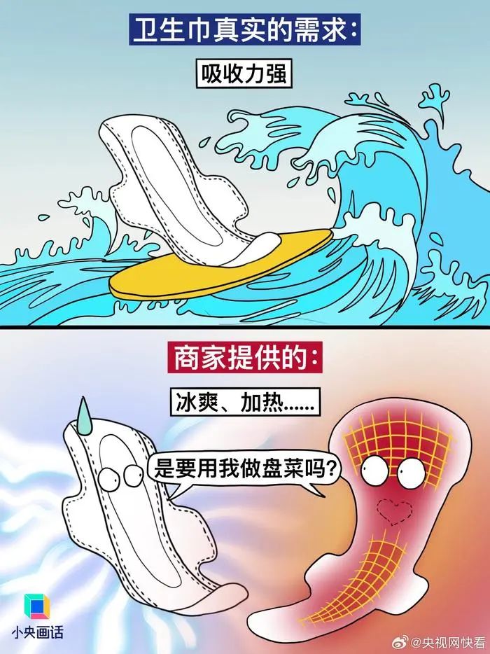 【#別拿消費(fèi)主義那套來做衛(wèi)生巾#】想不通,衛(wèi)生巾這種每個(gè)月都要用的東西,怎么會(huì)做得又貴又難用。商家以為我需要:加冰、加熱、加玻尿酸、粉嫩包裝、明星代言……實(shí)際我需要的:干凈衛(wèi)生、護(hù)翼好貼、安全不漏、價(jià)格適中。衛(wèi)生巾是日用品,別搞消費(fèi)主義輕奢那一套。(繪圖.阿彬的漫畫生活)#有種女性貧困叫月經(jīng)貧困#